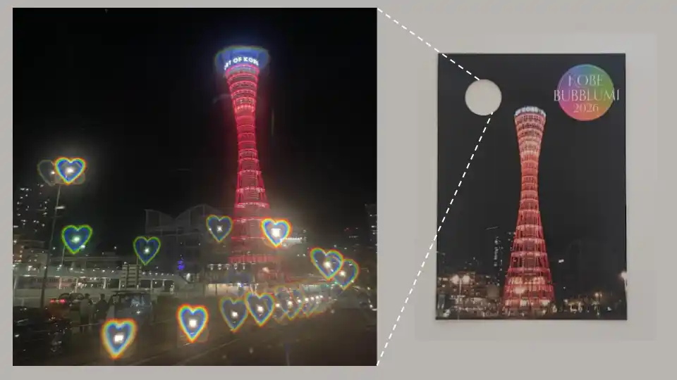 『KOBE BUBBLUMI 2026』の会場前に本社を構えるフェリシモからは、開催を記念したオフィシャルグッズが登場。ライトアップされたアートの球体がハートに見える不思議なフォロカードなど、『KOBE BUBBLUMI 2026』のイルミネーションがさらに楽しくなるアイテムがラインナップします。 |
