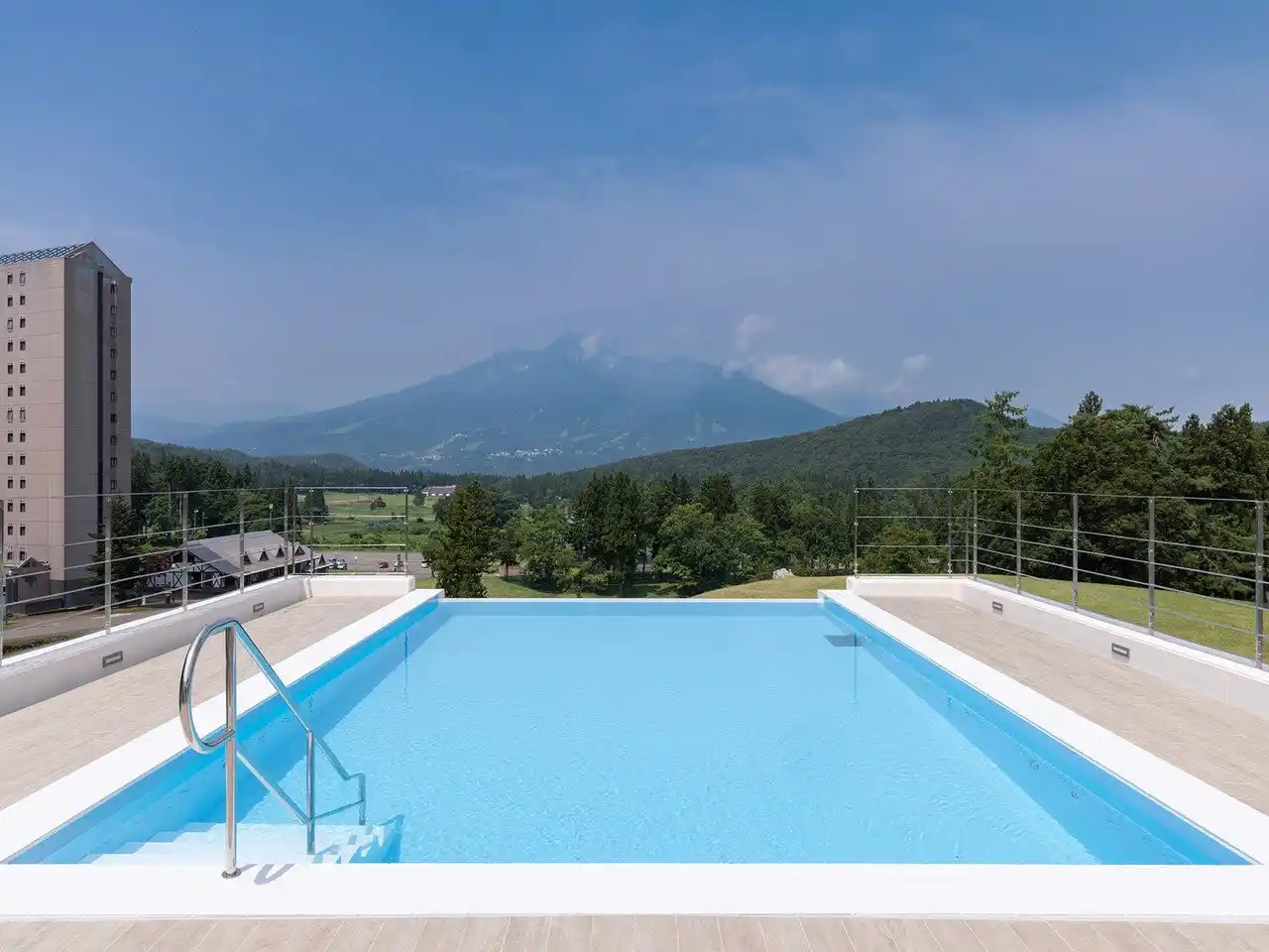 息を飲むような空と妙高山の絶景を味わえるインフィニティプール |