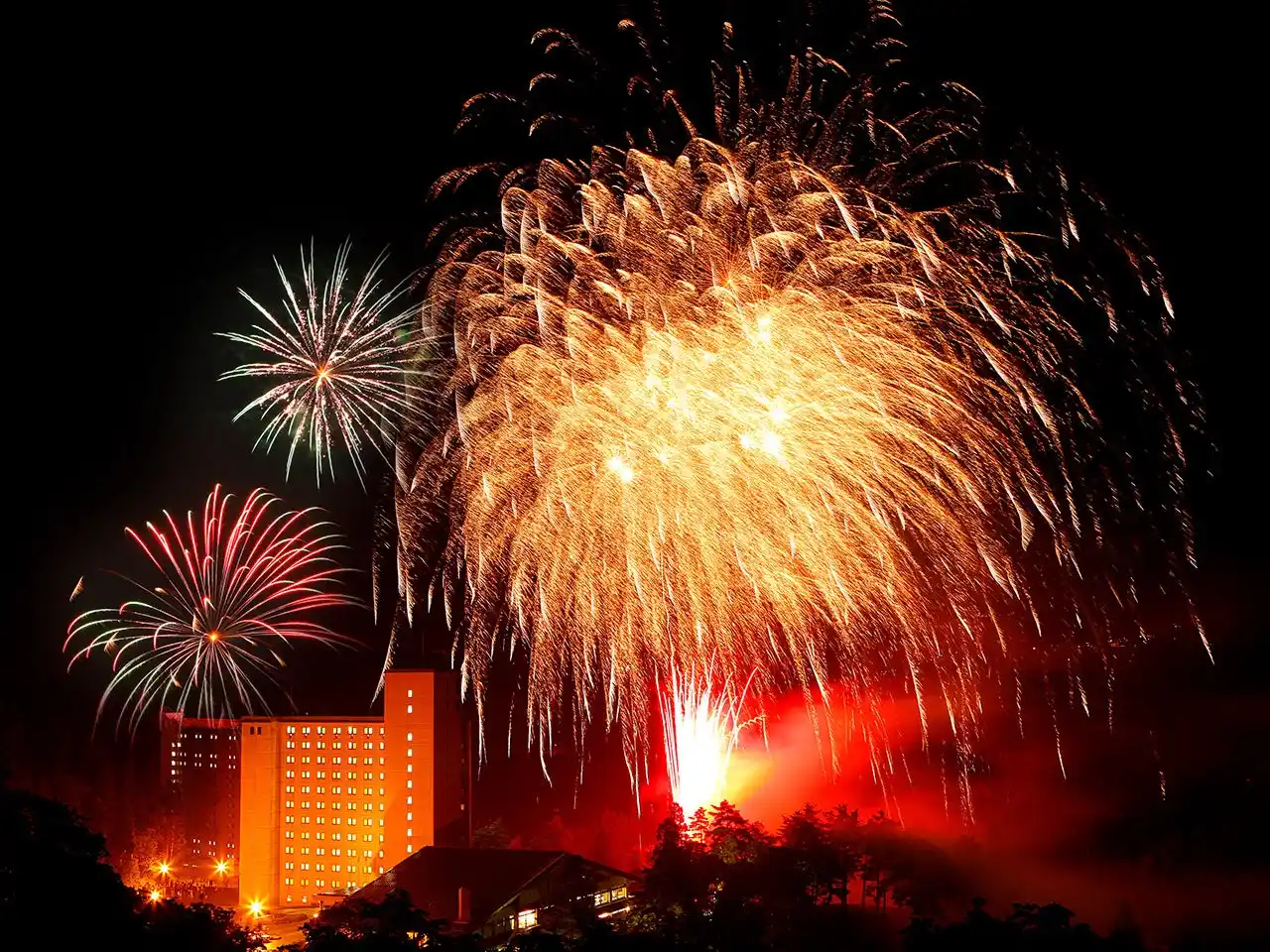 夏休みや連休時には、高原の夜空を彩る打上花火を開催! |
