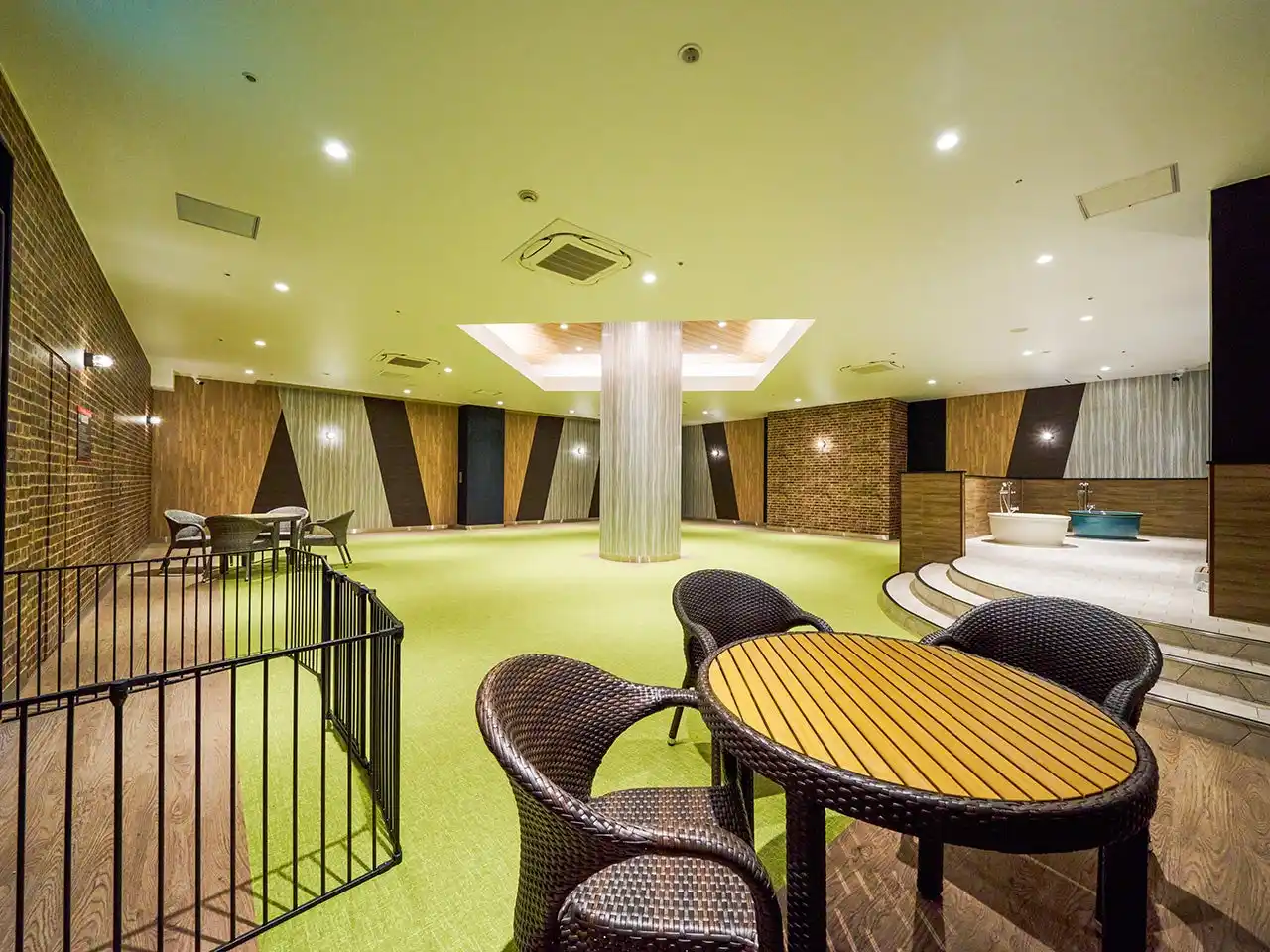 2026シーズン、天然芝グラウンドを1面増床し、「全3面体制」に拡充します。標高600mの清涼な空気の中に広がる天然芝は、サッカーやラクロス等のスポーツ合宿、大会開催に最適なコンディションを提供します。ホテル隣接の利便性に加え、練習後は天然温泉でリフレッシュできる等、アスリートのパフォーマンスを支える環境を整えました。 一方で、新設グラウンドは「宿泊者専用フリーエリア」としても開放。サッカーボールやバドミントン等のレジャー用品を無料で貸し出しており、ご家族やグループで手ぶらで楽しめます。本格的なスポーツ需要に応えつつ、大自然の中で誰もが自由に羽を伸ばせる、贅沢な天然芝フィールドをご体感ください。 |