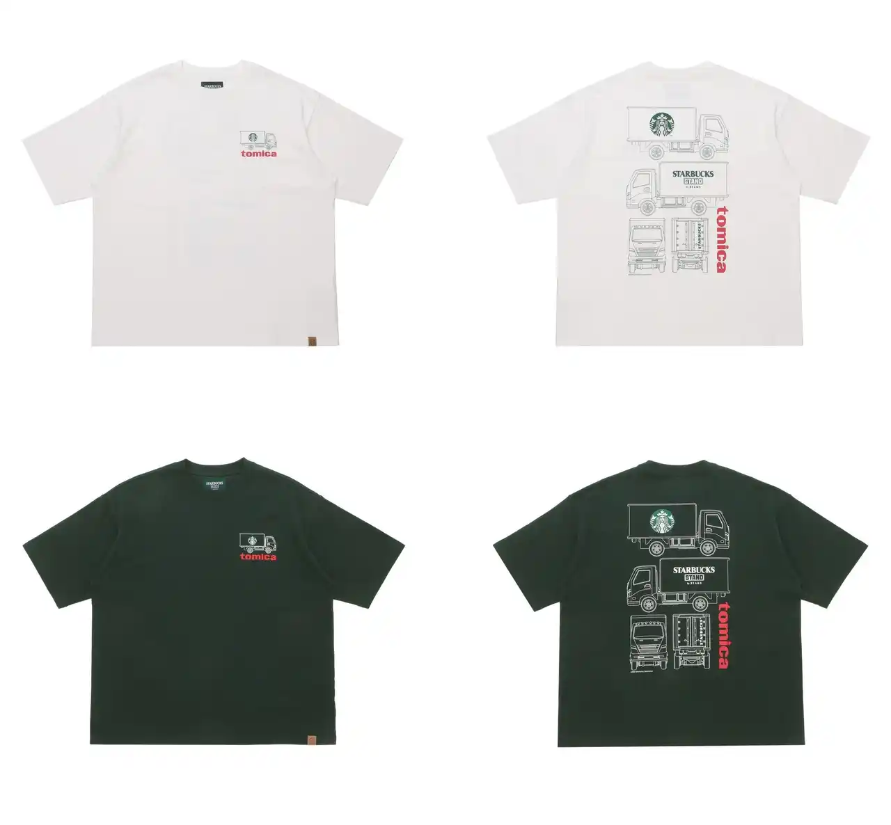 STARBUCKS STAND by BEAMSの定番Tシャツをベースに、トラックのプリントを施しトミカらしい遊び心を表現しました。バックプリントには、トミカのトラックを大胆に描いたグラフィックを使用しています。裾にアイコンとなるオリジナル合皮ピスネームでアクセントを入れています。肩幅と身幅にゆとりを持たせ、ネックは身体に沿わせる設定にし、メリハリのあるシルエットに調整しました。14番手の糸で織られたUSAコットン天竺を採用。空紡糸のためシャリみのあるドライタッチと季節を問わない程よい肉感が特徴です。サイズは、S、M、L、XLの4サイズ展開のユニセックス仕様です。 |