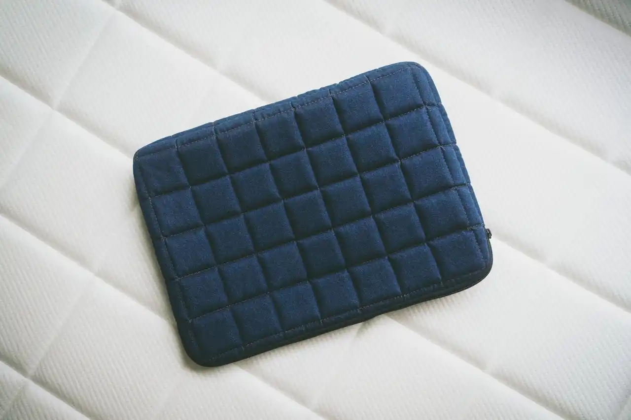 スリーピー・とうふマットレスの格子状デザインを着想源に、回収されたデニムをパッチワークで仕立て、柔らかさと適度なボリューム感を備えた手触りを実現。マットレス端材のメモリーフォームによる格子状のクッション構造がPCを保護し、機能性とファッション性を両立しています。Story Wear が掲げる「機能と環境の共生」という理念を形にしました。 全体はミニマルでありながら細部まで配慮され、都会の日常と自分らしいスタイルに寄り添う、現代的な佇まいに仕上げています。 |