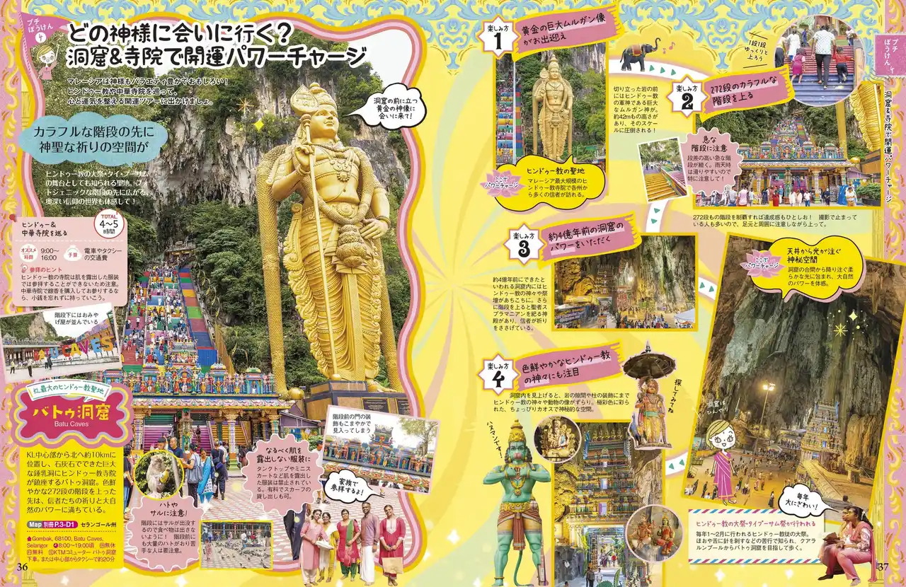 | クアラルンプールで絶対に行きたいピンクやブルーが印象的なモスクや、繊細な装飾が特徴の建築など、おもわず写真を撮りたくなるポイントをご紹介します。さらに、巨大な黄金の神像で知られるバトゥ洞窟などのパワースポットや、フォトジェニックなチャイナタウンの街歩きもピックアップ。マレー鉄道に乗っていく美食の街イポーや、紅茶がおいしい高原キャメロンハイランドへのショートトリップ特集も必見です。 | |||||||