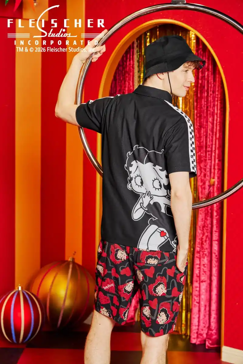 特徴:高機能素材「ECOマイクロカノコ」を使用し、吸汗速乾・UVカット・ストレッチ性を完備。胸元にはアイコニックな刺繍を施し、サイドの市松ラインがアクセントに 。背面にはインパクト抜群のベティーちゃんが顔を覗かせます。 |