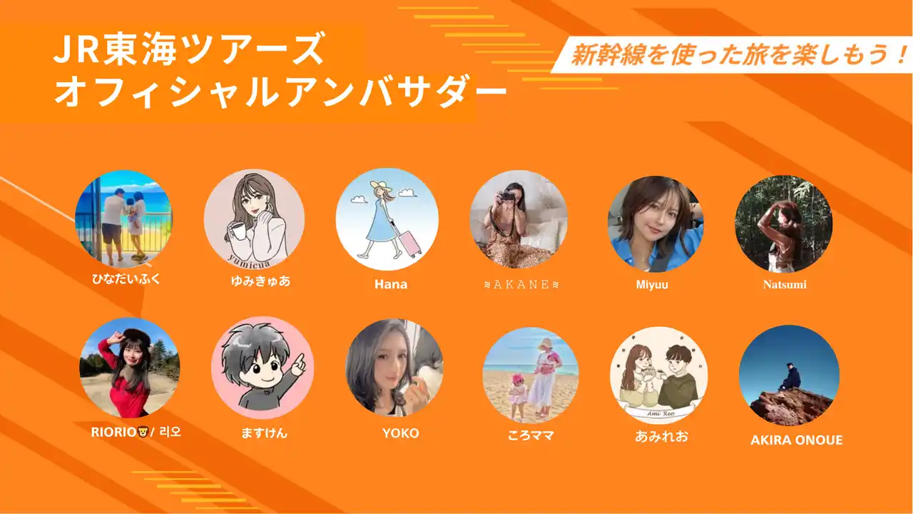 アンバサダーには、約半年間の活動期間中にEX旅パックを使って旅に出ていただき、ご自身のSNSで「#JR東海ツアーズアンバサダー」のハッシュタグを活用して、実体験を通して感じた新幹線旅行の魅力を発信していただきます。 |