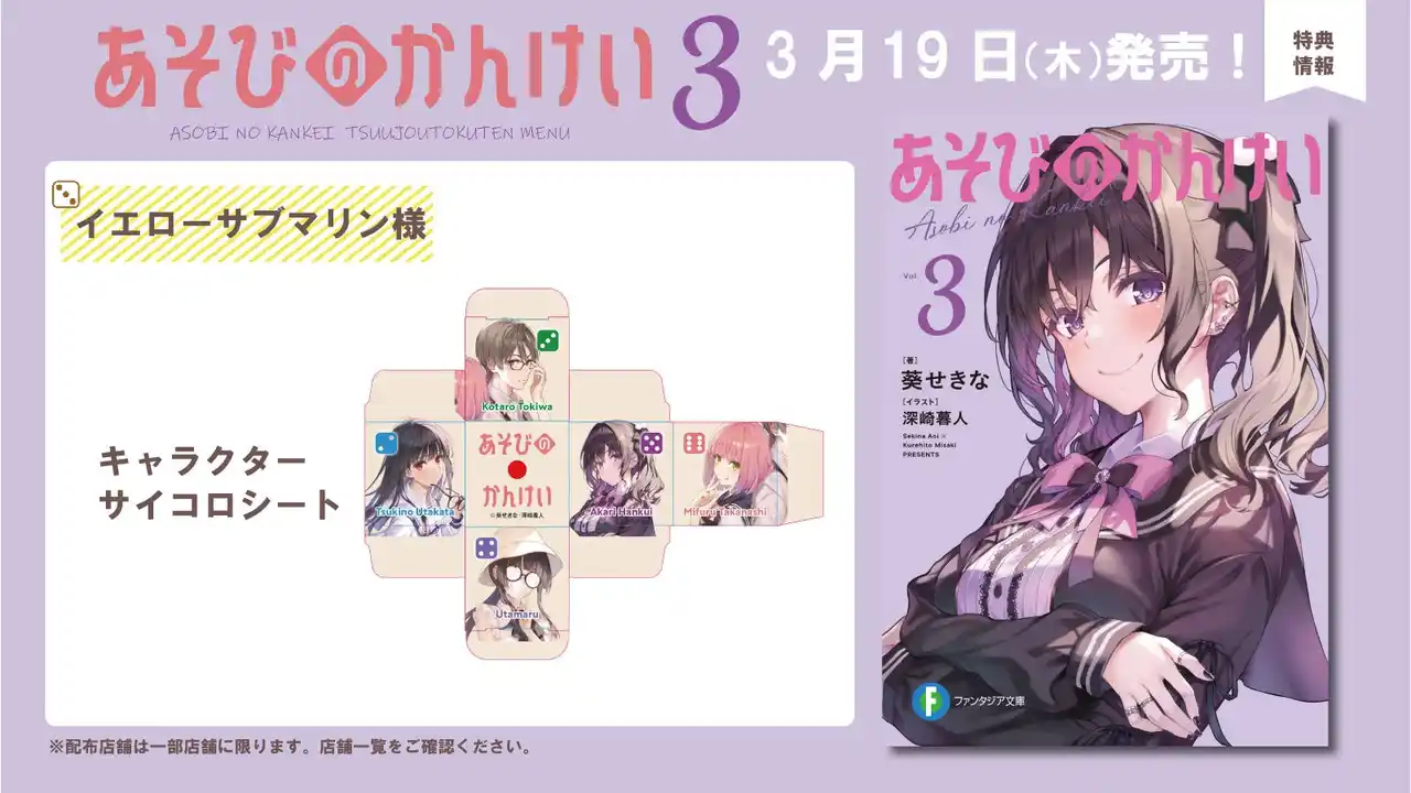 | 株式会社KADOKAWA(本社:東京都千代田区、取締役 代表執行役社長 CEO:夏野剛、以下KADOKAWA)は、ファンタジア文庫『あそびのかんけい』の第3巻を、2026年3月19日(木)に発売したことをお知らせします。 | |||||||||