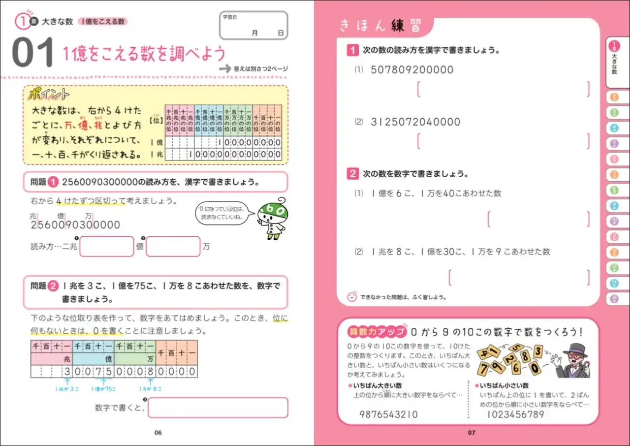 右ページは基本練習。ポイントを押さえた練習問題を解くことで、左ページの学習事項がしっかり定着します。 |