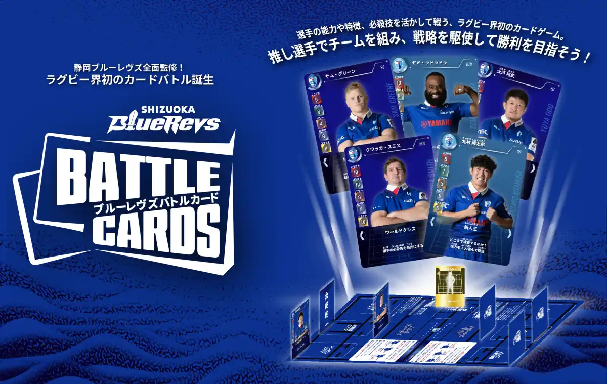 | 静岡ブルーレヴズはこのたび、選手をモチーフにしたカードゲーム型オフィシャルグッズ、<2025-26ブルーレヴズ選手バトルカード>を発売いたします。本商品は、ブルーレヴズの選手たちがカードとなり、それぞれの能力や特徴を活かして対戦を楽しめるカードゲームです。カードを収集してチームを編成、能力に応じた戦略を駆使して対戦することで、ラグビーや選手の魅力をゲームで体験することができます。ラグビー界において「選手で戦うカードゲーム型オフィシャルグッズ」は初の商品化※となります(※当社調べ)。本商品を通じてファンの皆様と、新しくより深い接点を創出し、ラグビーの魅力をより多くの方へお届けしてまいります。 | |||