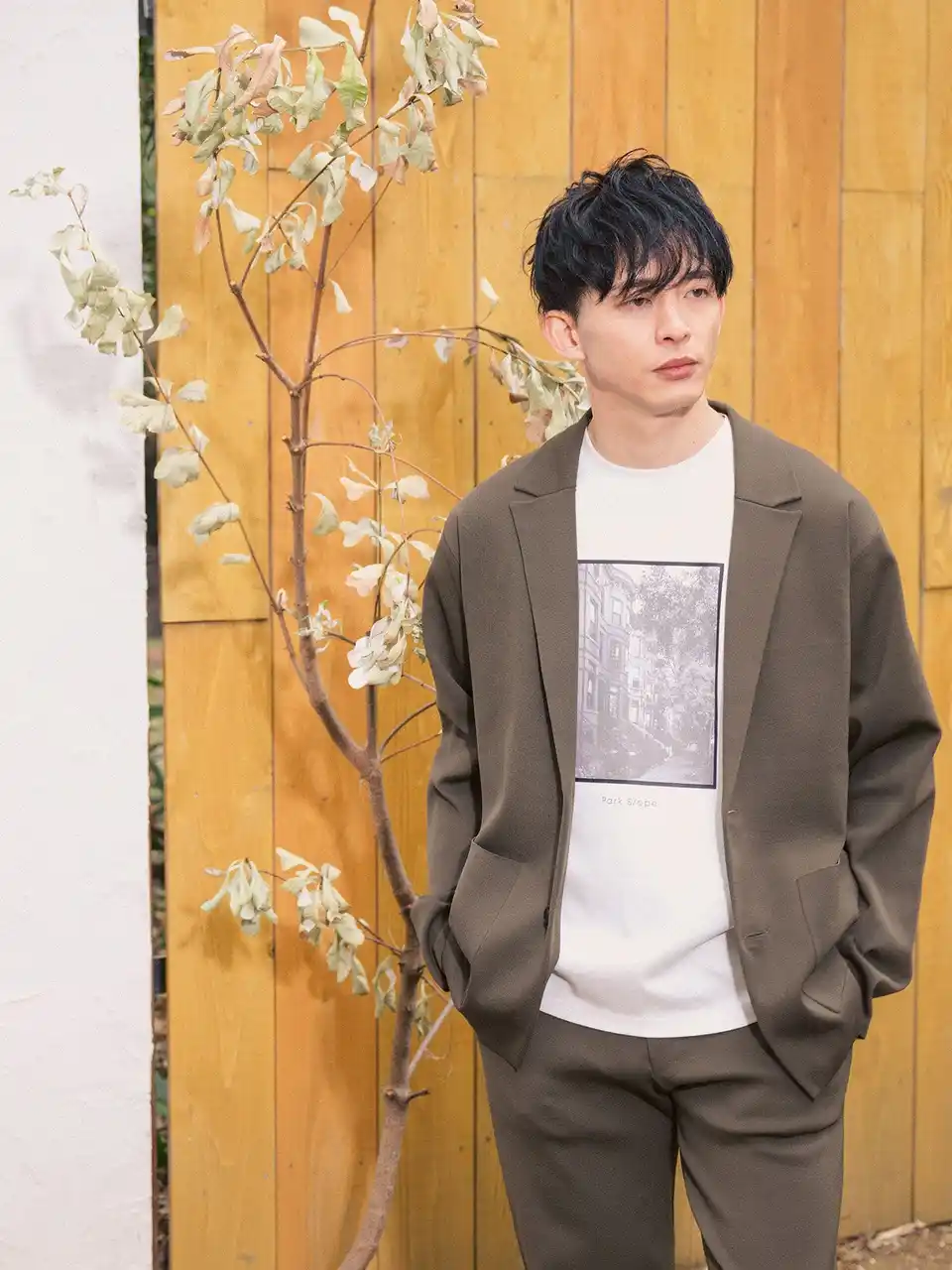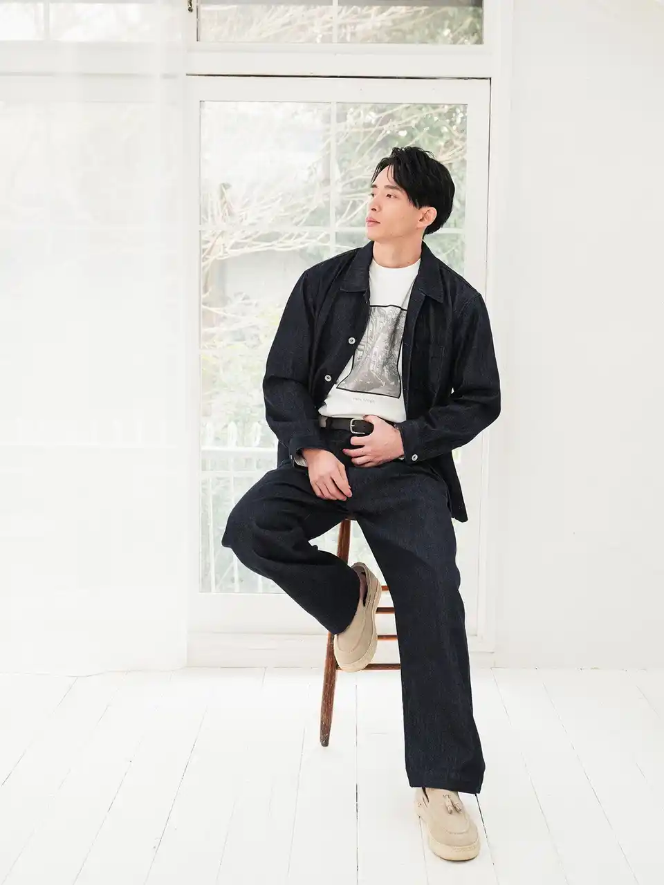 | メンズは柔らかなデニムのセットアップ。ウィメンズは上品な艶をまとったセットアップ。幅広いシーンで活躍するスタイル。 | |||