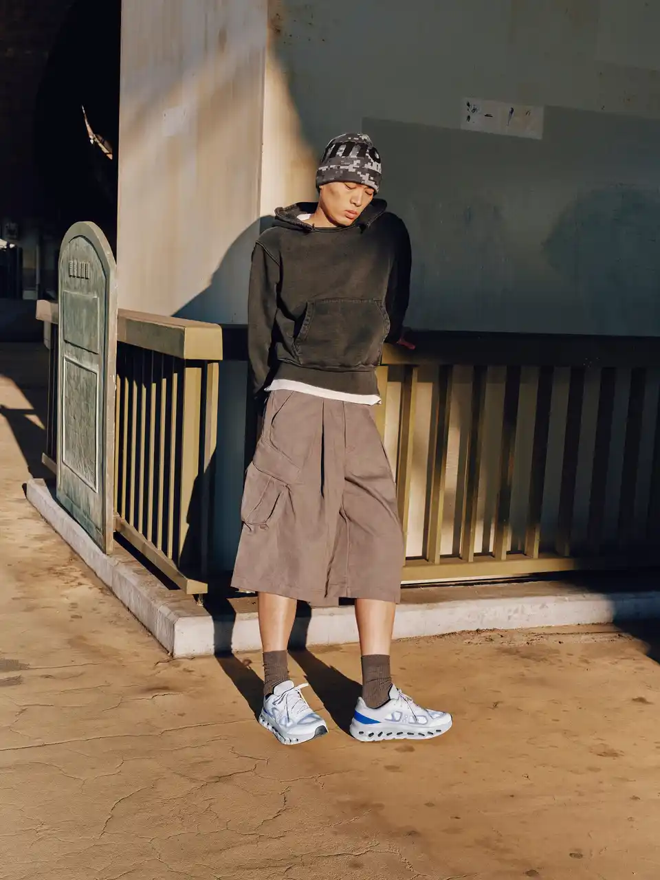 異素材レイヤーが生むテック系ルック |