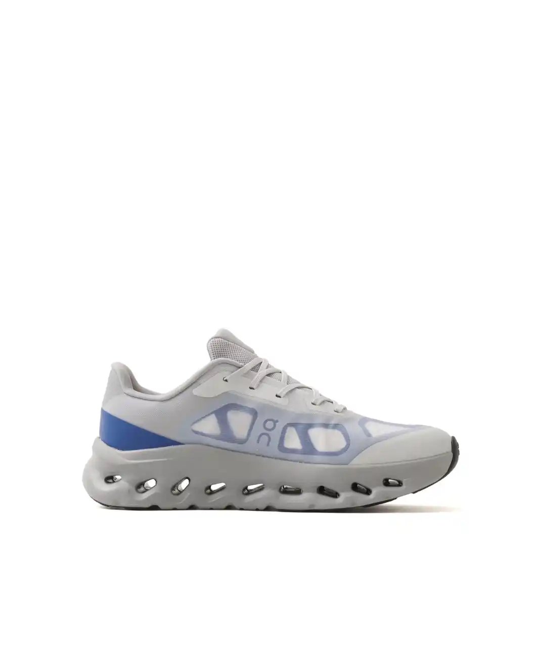 「Cloudtilt Remix」のCloudtiltとの大きな違いは、アッパーのデザイン。シースルー素材を無縫製で何層にも重ねた立体感のあるオーバーレイは、レントゲンアートのようなルックと質感。カットアウトしたOnロゴを配して、テクニカルな印象に仕上がっています。 |