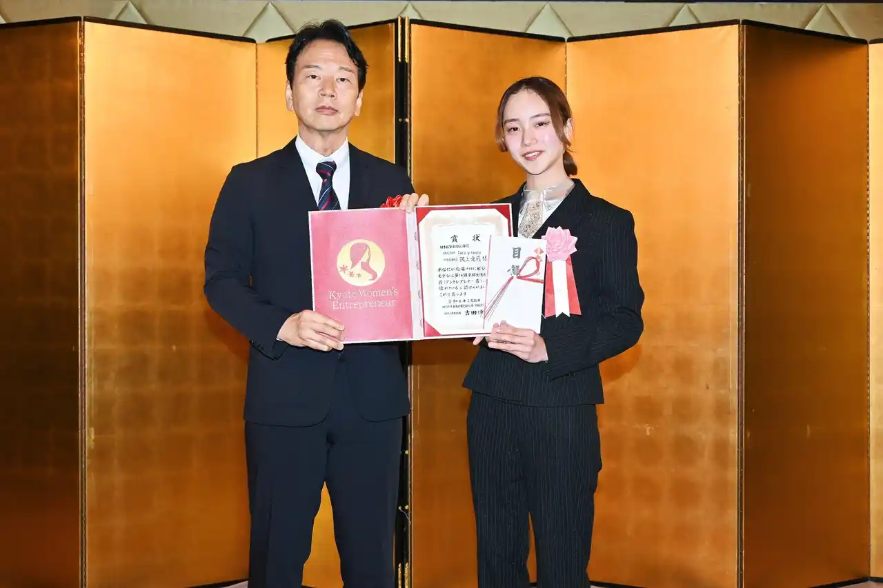 本賞は「人々の生活向上や地域社会・経済の活性化に寄与する女性起業家のビジネスモデルを募集」(京都府HPより)するものであり、京都の伝統工芸と犬を掛け合わせた独自のビジネスモデルや、インバウンド市場を見据えた展開、文化継承への貢献が評価されました。 |