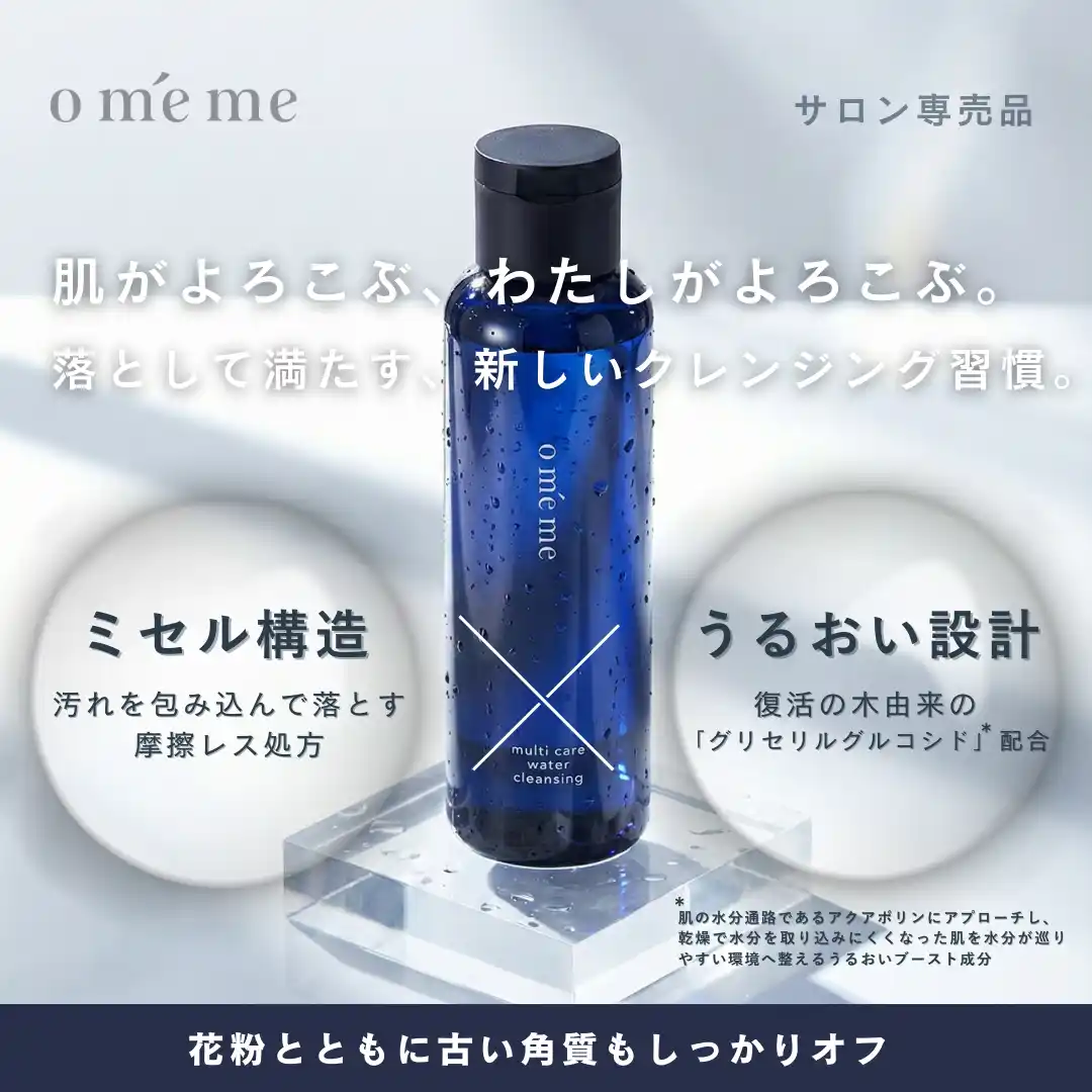 and US株式会社(本社:富山県富山市、代表取締役社長:廣岡伸那)が展開するスキンケアブランド「omeme(オメメ)」は、花粉シーズンに向けて、「omeme multi care water cleansing(マルチケアウォータークレンジング)」を改めてご提案いたします。