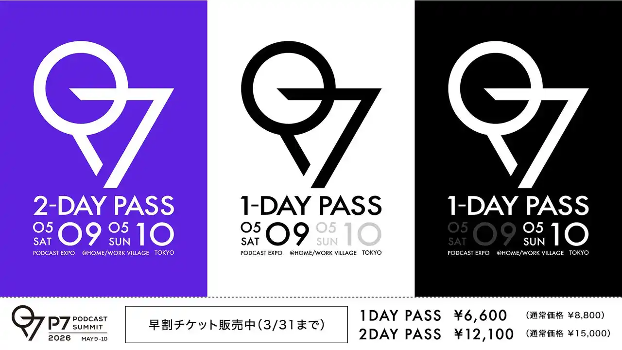 有料エリア「P7 PODCAST SUMMIT」に参加できる早割チケットの販売期間を、好評につき2026年3月31日まで延長します。 |