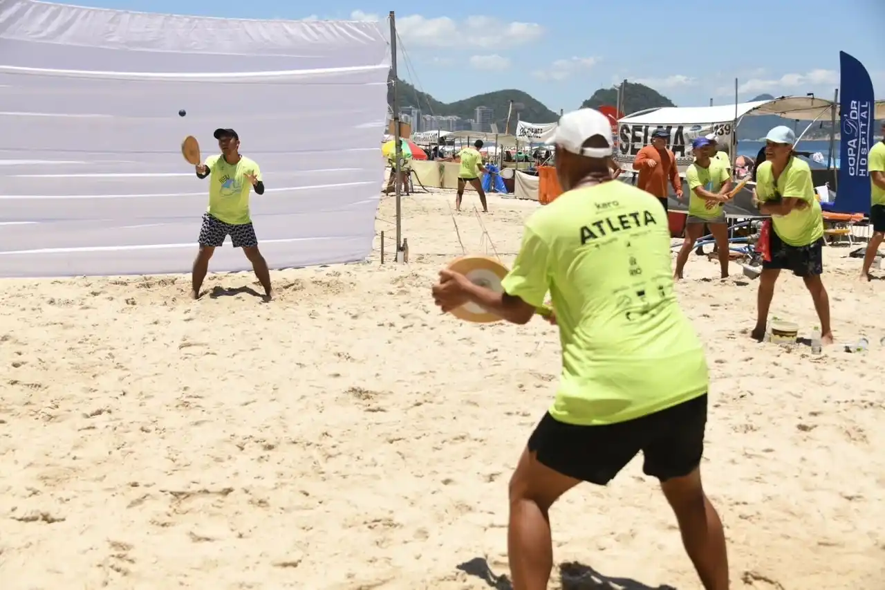 フレスコボールとは? フレスコボールは、ブラジルのリオデジャネイロ発祥のビーチスポーツです。1945年にリオ・デ・ジャネイロのコパカバーナビーチで考案され、現在は世界各地のビーチで親しまれるようになっています。フレスコボールの最大の特徴は、向かい合う2人が競い合うのではなく、協力してラリーを続ける採点競技という点。競技時間は5分間、7mの距離を保って試合を行います。協力してラリーを続ける様子から「思いやりのスポーツ」とも言われています。