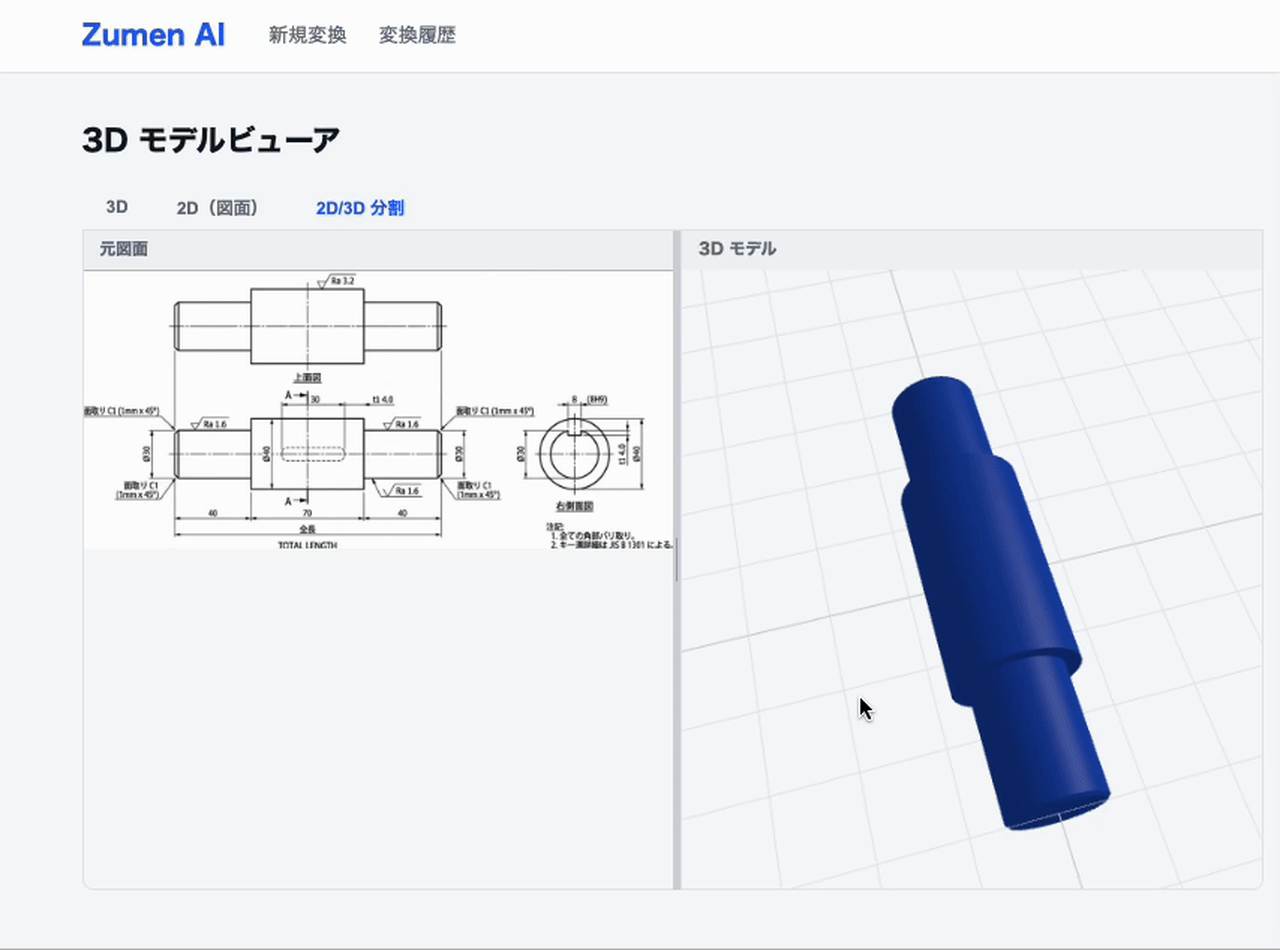 製造業の現場では、図面をもとに形状を把握し、見積、設計前工程、加工準備、確認業務へつなげる場面が数多くあります。一方、3Dデータの作成や形状確認は、依然として人手や経験に依存する部分が大きく、案件数の増加に伴って前工程の負荷が高まりやすいという課題があります。 |