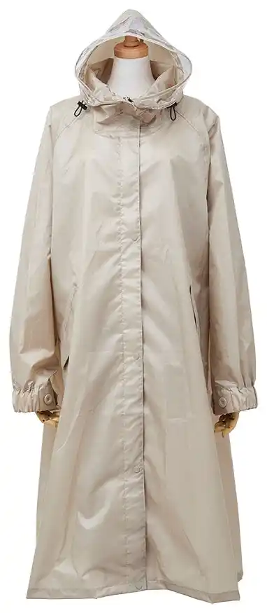 [コート](写真右) ペダルを漕ぐ際に足元の濡れを軽減するために、裾の内側に雨除けカバーを備えています。