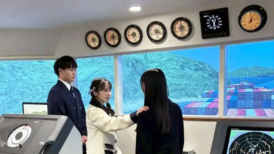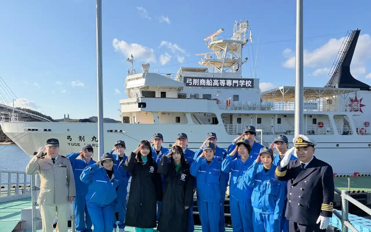 諸葛は「初めて触れることばかりで貴重な体験でした。もっと長い船旅になったときには、どんな困難が待っているのか?甲板、ブリッジ、エンジンルームで知らない専門用語が飛び交っていたので、もっと勉強してみたいです。実は船の仕事に憧れた時期もあり、今日は本当に貴重な経験ができ嬉しかったです」と語り、濱田も「あの緊迫した空気感の中で同世代の高専生たちが、船乗りになる夢に向かって真剣に努力している姿がキラキラしていて、本当に船が好きなんだな、ということが伝わってきました。私もアイドルが好きでこの世界に入ったので、思いが理解できる部分があったように感じます」と刺激を受けた様子だった。 |