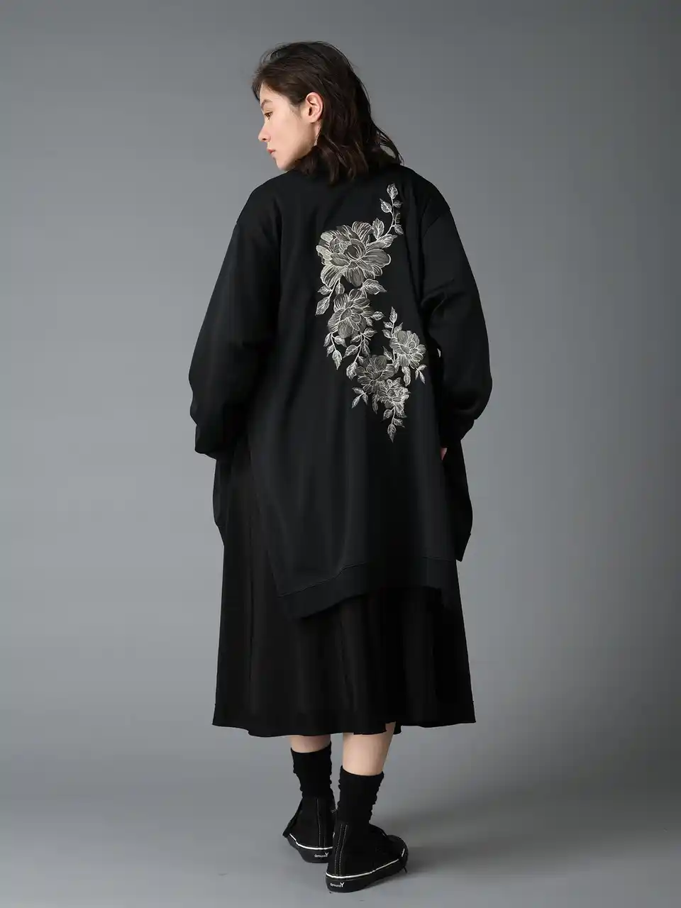 細身のトップスにワイドなパンツを合わせたタイト&ルーズなシルエットや、アネモネやダリアをあしらった華やかな花柄プリント、体の曲線に併せて縦に切り替えを細かく入れたパターンメイキング『縦切替』は注目です。 |