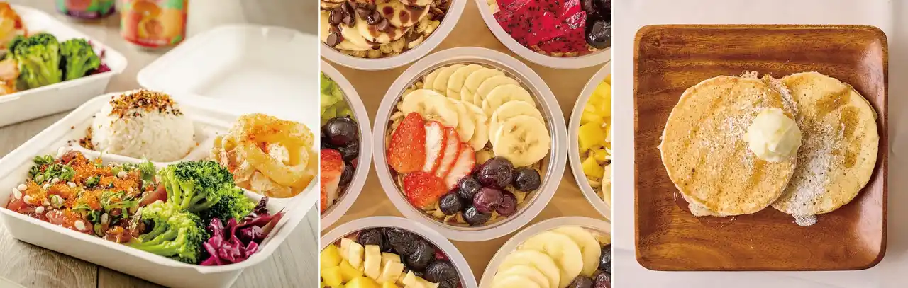 ガーリックシュリンプやアサイーボウル、パンケーキなど本場の味を再現したメニューが揃います。 |