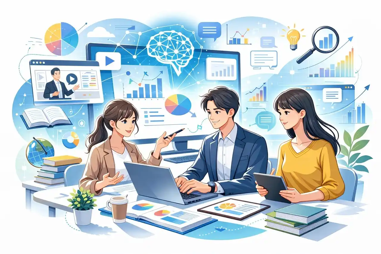 自社運用に基づき、教育・子ども向け事業者様のSNSマーケティングをトータルサポートします。※画像は生成AIで作成したイメージです。 |