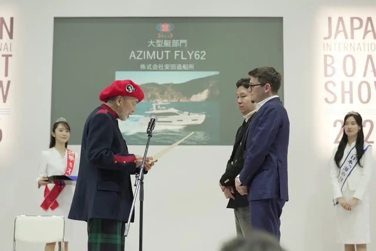 株式会社安田造船所(本社 : 東京都大田区 / 代表取締役社長 野澤隆之)内のAZIMUT YACHTS JAPAN 代表 高田侑典が取り扱う「AZIMUT FLY62」が2026年3月19日(木)に開催された「日本ボート・オブ・ザ・イヤー2025」において、最優秀艇であるグランプリを受賞いたしましたことをお知らせいたします。 |