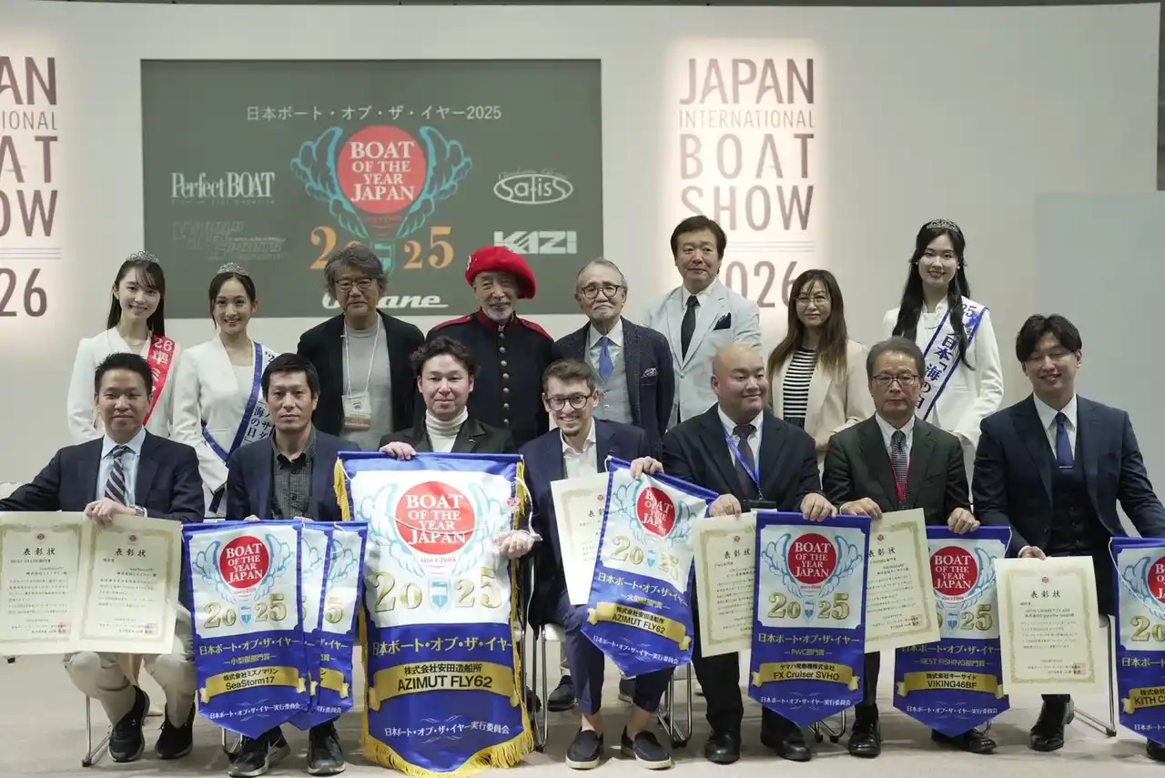 「日本ボート・オブ・ザ・イヤー2025」は、2026年2月26日に部門賞が発表されましたが、各部門賞を獲得した5艇の中から、選考委員24名により最終選考が行われ、「日本ボート・オブ・ザ・イヤー2025」が決定いたしました。最新のデザインとこれまでにない機能美が高く評価された結果の受賞となります。 |