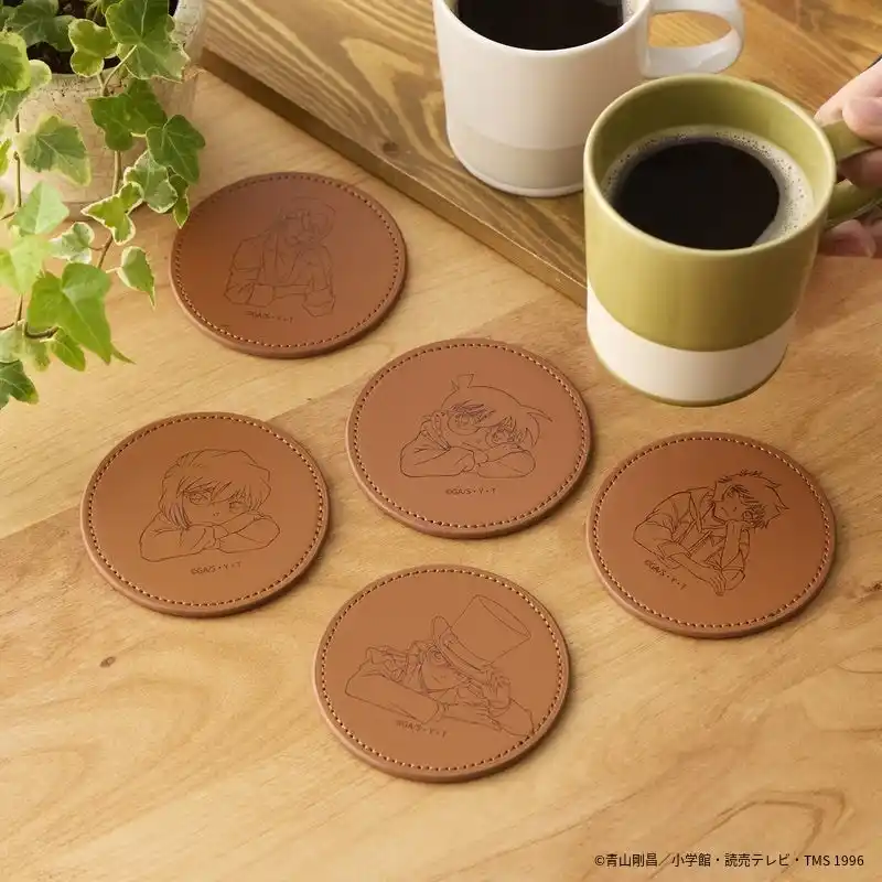 『名探偵コナン』合皮コースター(画像左上から)萩原千速/江戸川コナン/世良真純/灰原哀/怪盗キッド 各880円(税込) |