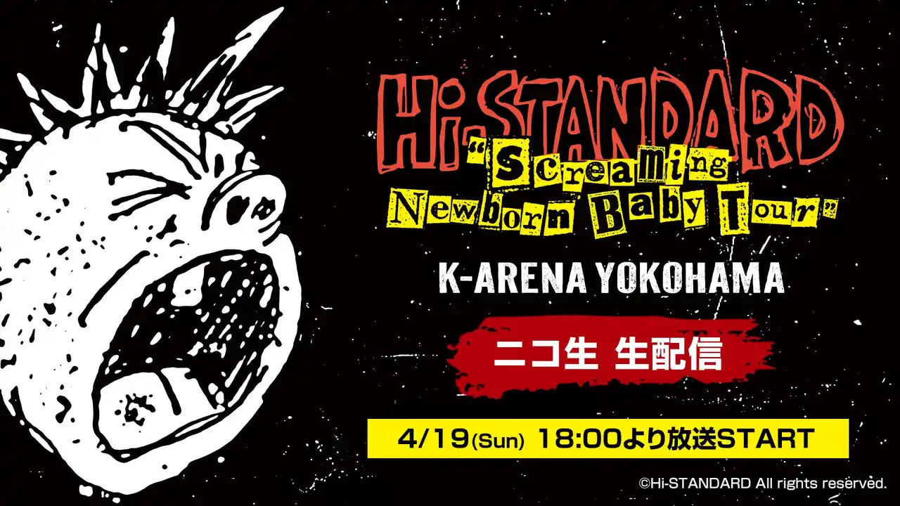 2025年11月にリリースされたミニアルバム「Screaming Newborn Baby」を引っ提げ、 ライブハウスとアリーナを巡る全国ツアー “Screaming Newborn Baby Tour” を開催中のHi-STANDARD。 ライブチケットは全会場SOLD OUT。 2026年4月19日(日)にKアリーナ横浜で開催されるツアーファイナル公演の生中継がニコニコ生放送にて決定いたしました。 アーカイブ配信は無し、貴重なステージをぜひお見逃しなくご覧ください。 またニコニコ生放送では投稿したコメントが画面上にリアルタイムに表示をすることが可能です。 |