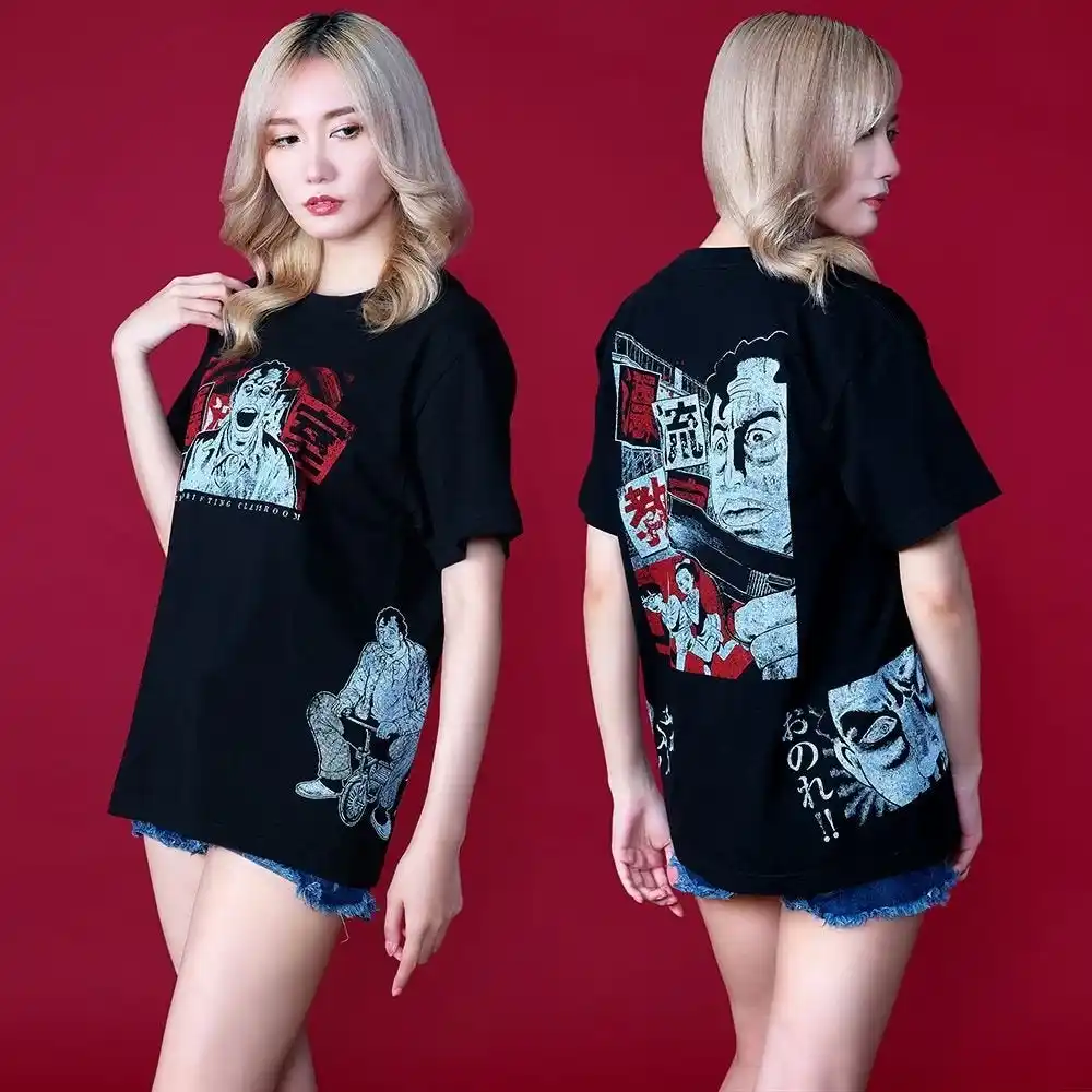 漂流教室 Tシャツ/5,500円(税込) サイズ:S~XXL(モデル168cm、Mサイズ着用) 作品の世界感をサイケデリックな色使いで表現したTシャツ。 |