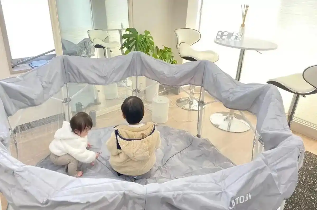 | レビナでは全店ベビーサークルを用意しています。お子様が目の届く範囲におりますので、ご自身のトレーニングに集中して取り組めます | |||