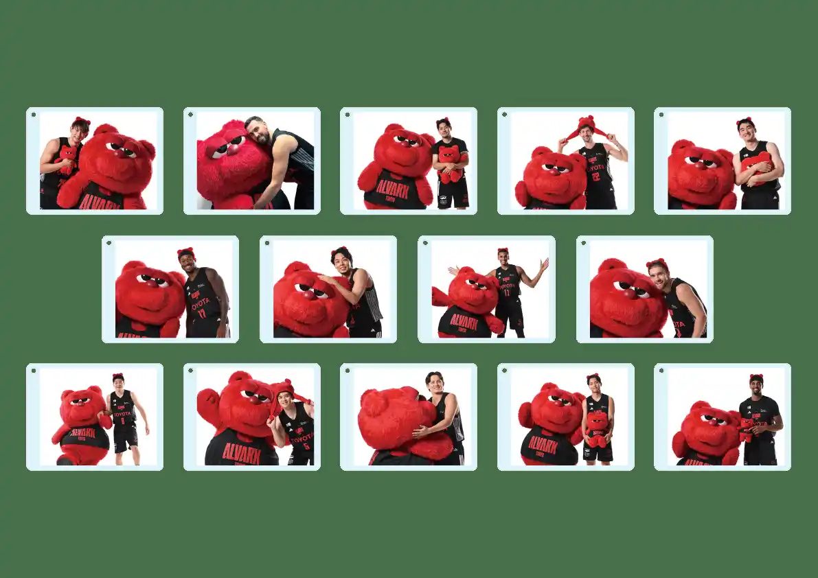 選手がルークになりきったり、ルークにハグしたり。それぞれにルークとの撮影を楽しむカットを厳選したクリアカード。 |