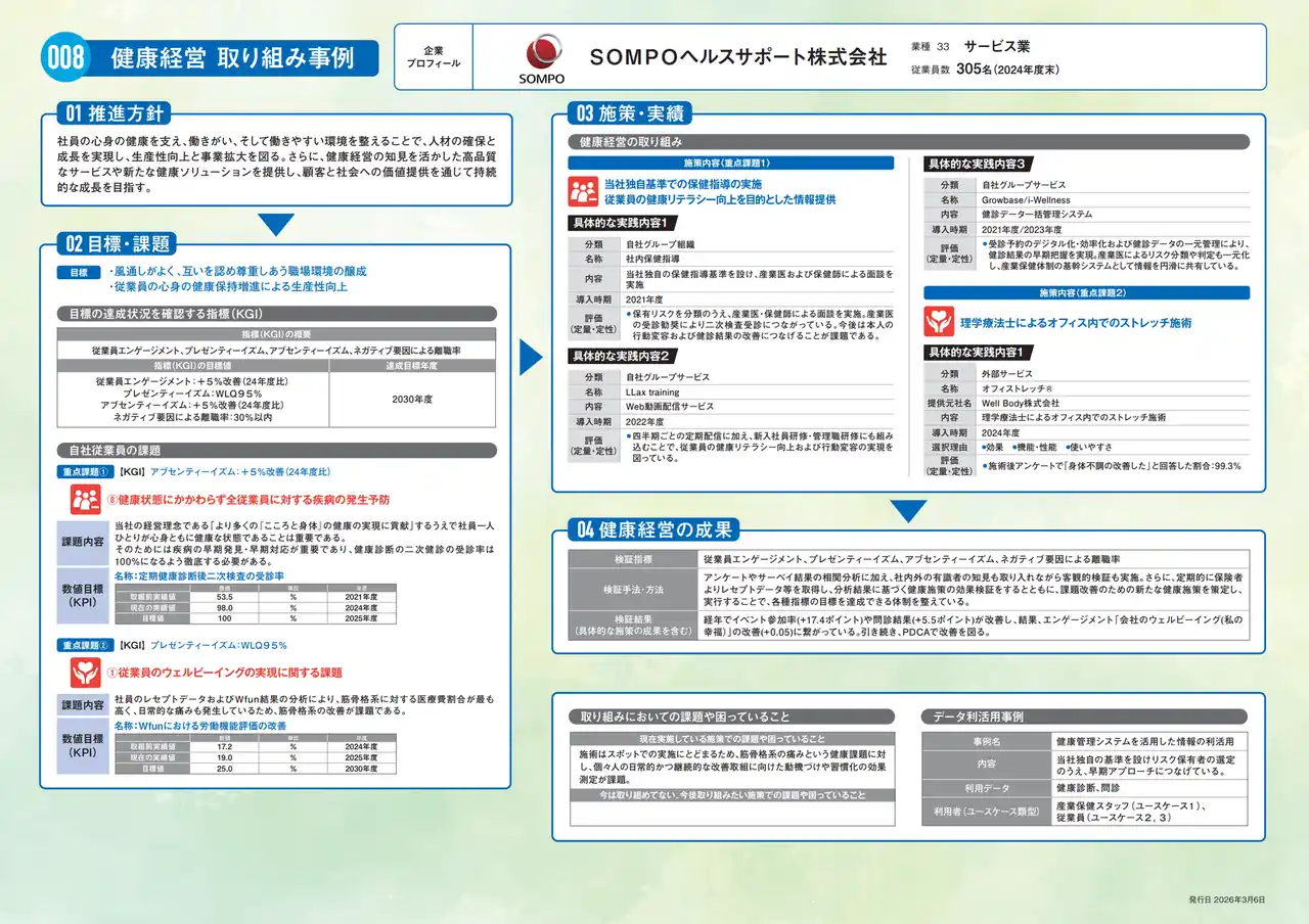 出典:健康長寿産業連合会「健康経営先進企業事例集2026」 (SOMPOヘルスサポート株式会社 掲載ページより引用)