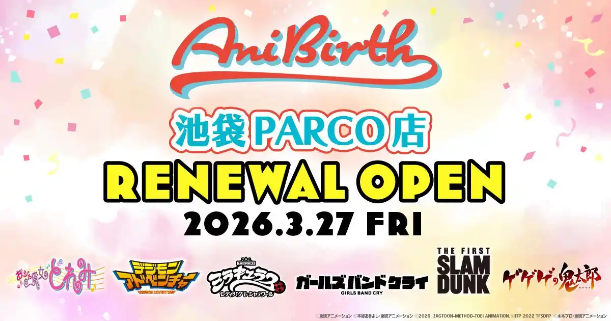 | 2026年3月27日(金)より、「AniBirth池袋PARCO店」は現在の5Fから6Fへ移転し、リニューアルオープンいたします。 | |||