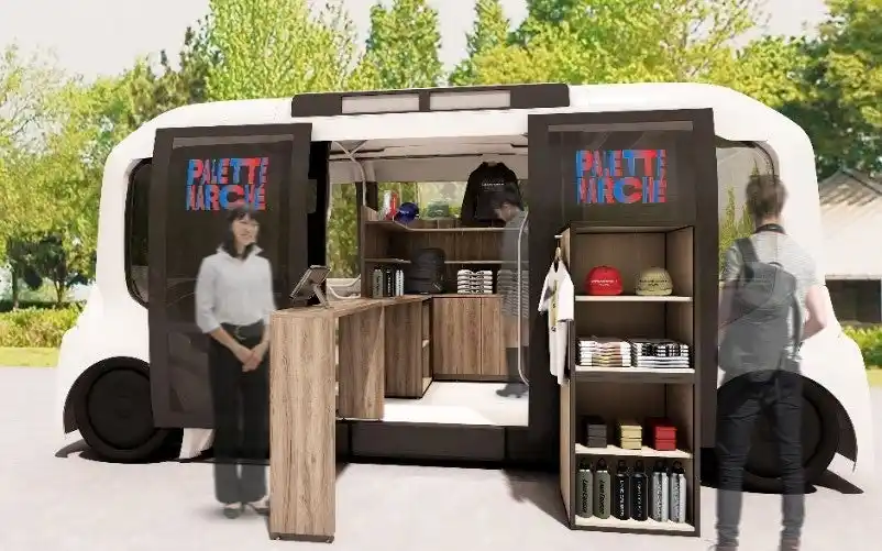 高い空間性を活かし、様々な形態に換装可能なe-Palette(イーパレット) にて、ドラえもん関連商品を販売 |