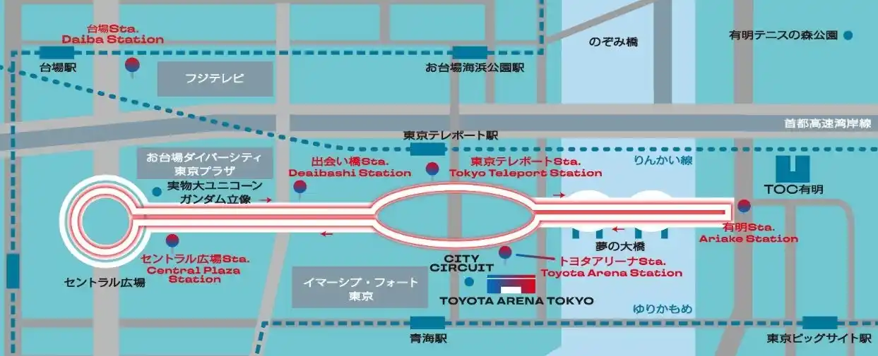 基本運行: シンボルプロムナード公園内に乗車用ステーション(以下Sta.)を設置 東京テレポートSta. 有明Sta.* トヨタアリーナSta. 出会い橋Sta. セントラル広場Sta.*(東京テレポートSta.を起点に周回運行) ※運行ルートによって、停車するステーションが異なります。 最新の運行ルートや詳細情報はWebサイトをご確認ください。 http://paletteride.jp/