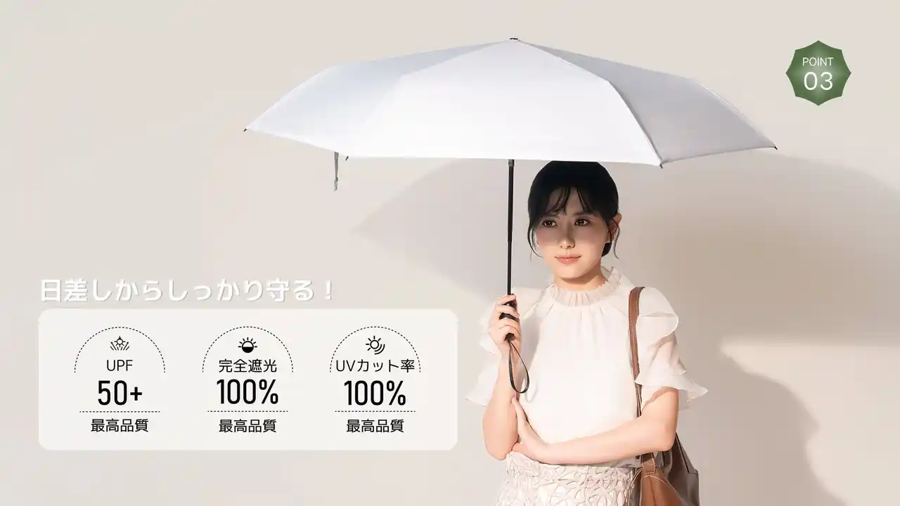 | 「毎日持ち歩いても負担にならない一本を届けたい」という想いのもと開発された本製品は、軽量性に加え、遮光・遮熱・耐久性・利便性を兼ね備えた晴雨兼用モデルとして、幅広いシーンでご活用いただけます。 | |||