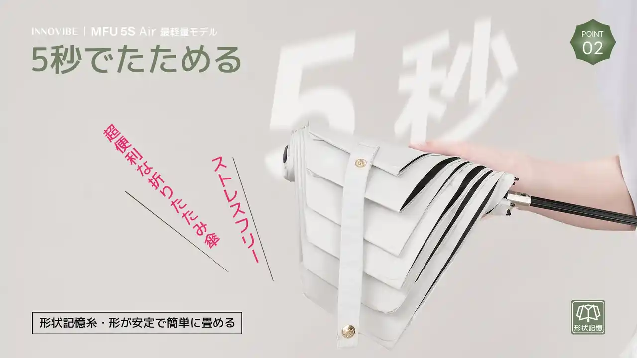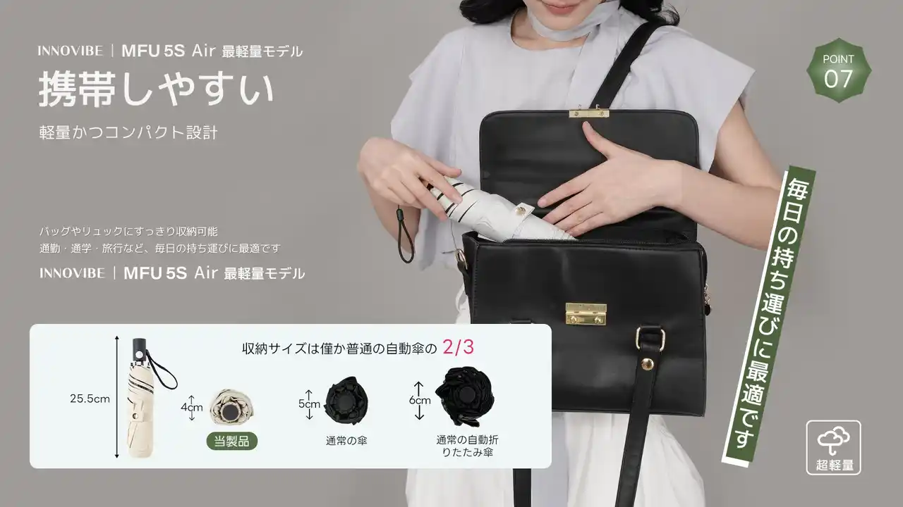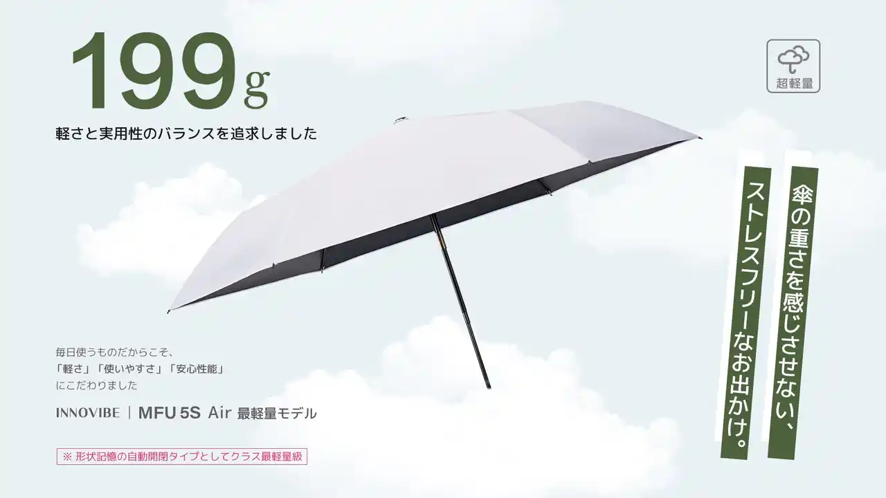 | ~約199gの超軽量モデル「KONCIWA MFU5S AIR」登場 ― 5秒でたためる晴雨兼用折りたたみ傘~ |