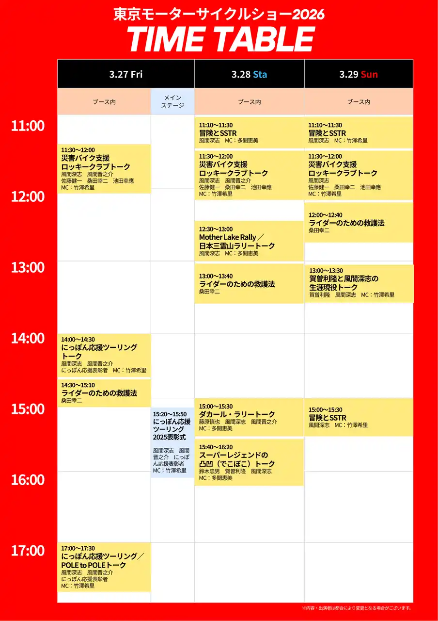 3月27日~3月29日 JRFイベントタイムテーブル |