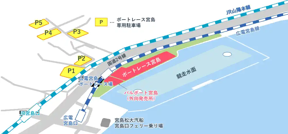 | ボートレース宮島専用駐車場をご利用の場合、インフォメーションで1,000円分の舟券と駐車券の提示で無料とさせていただきます。 | |||||||||||||||||||