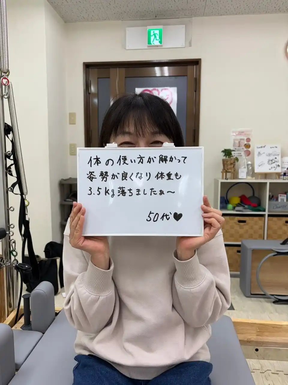 パーソナルに通って体の使い方を細かく教えていただけた事で、姿勢が良くなり体の不調を感じにくくなりました。 今まで通っていた整体に行かなくても良くなり、歩くのも速くなりました! 階段の上り下りも軽やかにできています。 ズボンのサイズも落ち今までは体型を隠す服装でしたが、背中やヒップラインも気にせず洋服を選べるようになったのが嬉しいです! 娘にも体のラインがとても綺麗になったと褒められます! 一番の喜びは先生との出会いです! |