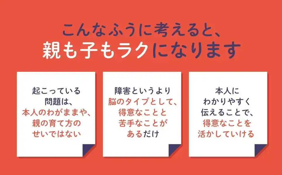 自身の子育てと、医師として多くの発達障害児やその家族と向き合ってきた経験から、親も子も「ラク」になる子育てであってほしいという想いから本書を執筆した。 |