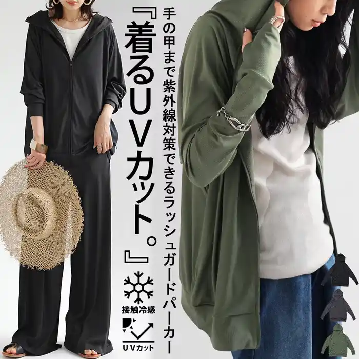 接触冷感素材を使用し、羽織るだけで紫外線対策ができる高機能パーカー。