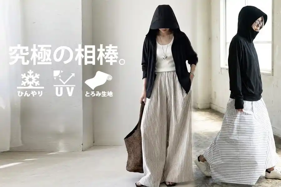 接触冷感素材を使用し、羽織るだけで紫外線対策ができる高機能パーカー。 |