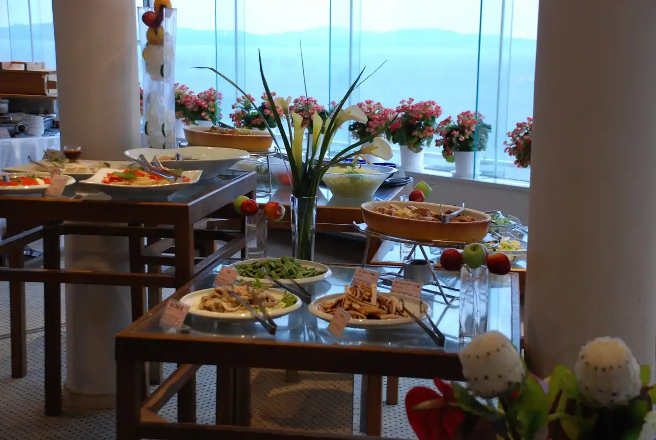 夕景に染まる三河湾を眺めながら楽しむディナーバイキング。季節の味覚を贅沢に味わえる人気企画です。 |