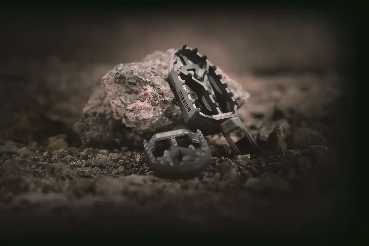 | アドベンチャーバイクは、オンロードからオフロードまで多様な走行状況に対応する万能性が求められます。そのため、フットペグには単なる足置きとしての機能だけでなく、ライダーの体重を確実に支える高剛性、長時間のライディングでの疲労軽減に繋がるグリップ力、そして過酷な環境に耐えうる耐久性が不可欠です。アクラポビッチのチタンフットペグは、これらの要素を高次元で満たすように設計されています。 | |||