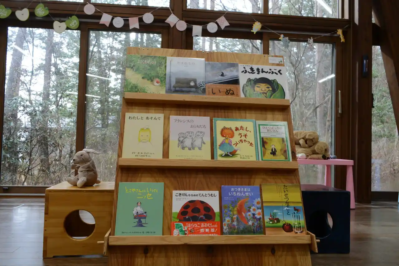 | 「あづみの学校 多目的ホール」に、絵本を楽しむスペースが登場。今年は「ともだち」をテーマに、「絵本美術館 森のおうち」と「安曇野ちひろ美術館」から借用した海外・国内の絵本約200冊を展示。懐かしいタイトルや、初めて見るタイトルなど様々な絵本が勢ぞろい。親子でゆっくりと読書をお楽しみいただけます。 | ||||||||||||
