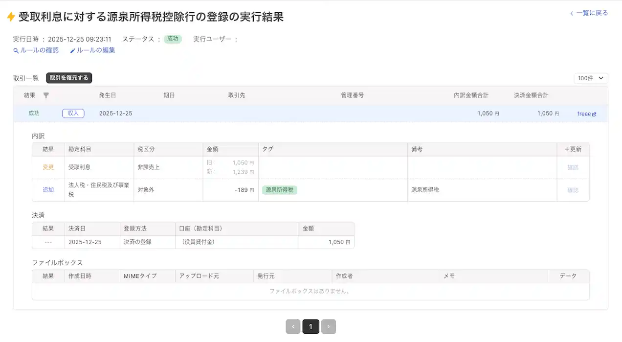 一括や自動で変更した取引に対して、万が一誤った設定で処理を行ってしまった場合でも、変更単位で元の状態に戻す(巻き戻す)ことが可能です。強力な一括更新機能だからこそ生じる「間違えたらどうしよう」という現場の不安を払拭し、日々の自動化に確かな安心感をプラスする新しい選択肢を提供します。 |