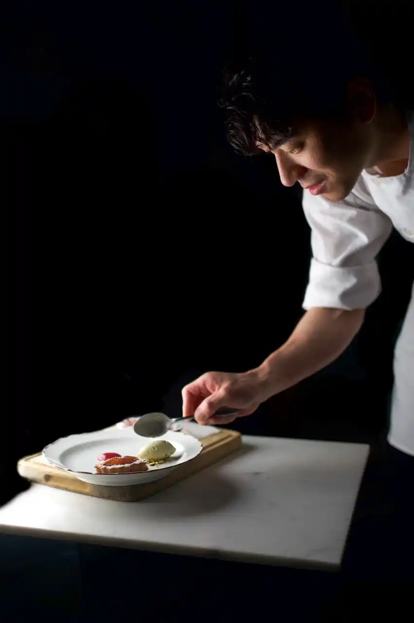 奈良県生まれ。ロブションなど数々の有名店で研鑽を重ねたのち、2018年から22年まで、ミシュラン2つ星のNARISAWAでシェフパティシエを務める。その後、ニューヨークのフランス料理店の立ち上げにシェフパティシエとして携わり、ミシュラン一つ星の獲得に貢献。ニューヨークではオーダーケーキやOEMも手がけ、ミシュランなどの有名メディアに何度も取り上げられた。2025年、日本に帰国し、約1年間の開業準備をへて、4月15日にデザートコース専門店Authenticを富ヶ谷にオープン。
