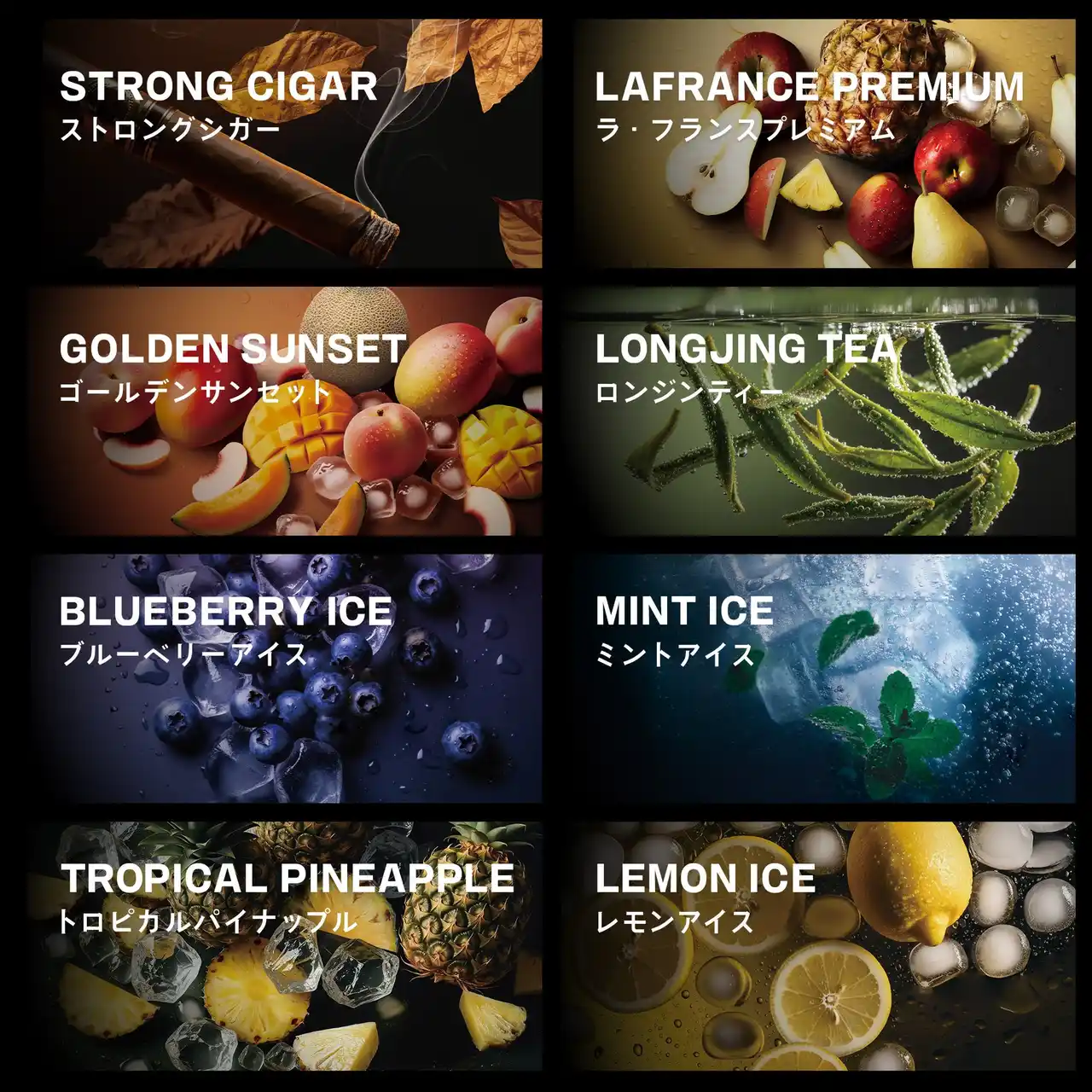 甘さ重視のフルーツ系からガツンとくるシガー系まで、喫煙者一人ひとりの好みに応える豊富なラインナップを展開します。 |